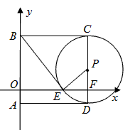 如图,在平面直角坐标系中,A、B两点的坐标分别为(0,-2),(0,8),以AB为一边作正方形ABCD,再以CD为直径的半圆P,设x轴交半圆P于点E,交边CD于点F。