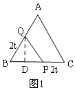 ∴QD=2t$•\frac{\sqrt{3}}{2}$=$\sqrt{3}$t,