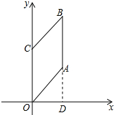 解答 解:(1)设过点B的双曲线的解析式为y=$\frac{k}{x}$;延长BA交x轴于D,