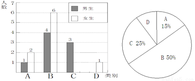 (1)本次调查中,张老师一共调查了 名同学,其中C类女生有 名,D类男生有 名;