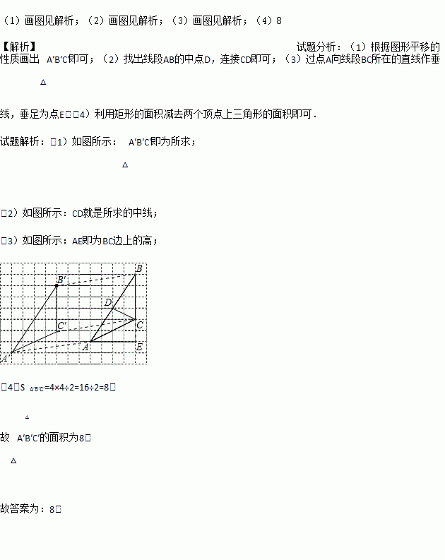 (1)在给定方格纸中画出平移后的△A′B′C′;