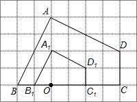 (1)以O为位似中心,在网格图中作四边形A1B1C1D1和四边形ABCD位似,且位似比为1:2;