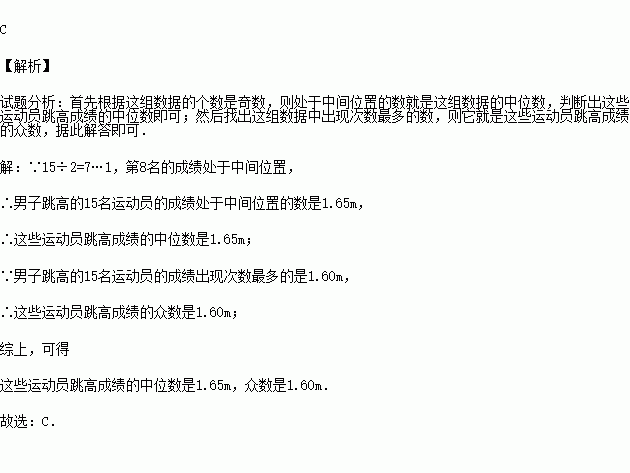 (2015•达州)2015年某中学举行的春季田径径运动会上,参加男子跳高的15名运动员的成绩如表所示: