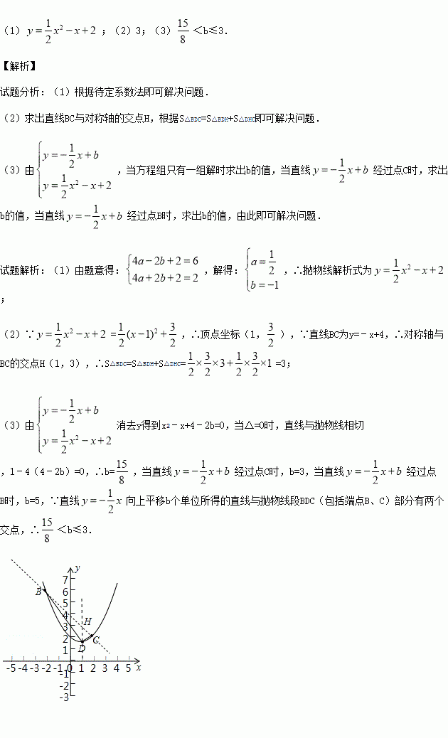 向上平移b个单位所得的直线与抛物线段BDC(包括端点B、C)部分有两个交点,求b的取值范围.