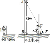 分析 假设电线杆AB落在墙上的影子CD的高为x米,如果没有墙CD,则影子落在点E,利用在同一时刻物高与影长的比相等首先求出DE=$\frac{1}{2}$x米,再根据AB:BE=CD:DE,得到8:(3+$\frac{1}{2}$x)=1:0.5,解方程即可.