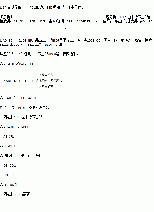 (2)连接DG,若DG=BG,则四边形BEDF是什么特殊四边形?请说明理由.