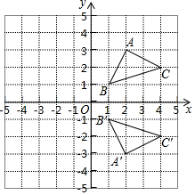 解:(1)如图所示:△A′B′C′即为所求,A′(2,-3),B′(1,-1),C′(4,-2);