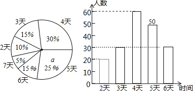 (3)估计“不少于4天”的学生人数是:6000×(30%+25%+15%+5%)=4500(人).