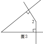 图3中,同样根据垂直的量相等的角都等于90°,根据四边形的内角和等于360°,所以∠1+∠2=360°-90°-90°=180°.