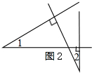 (2)图2中,根据垂直的量相等的角都等于90°,对顶角相等,所以∠1=∠2,