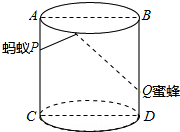 如图,圆柱形玻璃杯,高为12cm,底面周长24cm,矩形ABCD为其轴截面,在杯内距离杯底3cm的点Q处有一滴蜂蜜,此时一只蚂蚁正好在杯外壁,离杯上沿2cm的P处.若杯的厚度不计,则蚂蚁到达蜂蜜的最短距离为