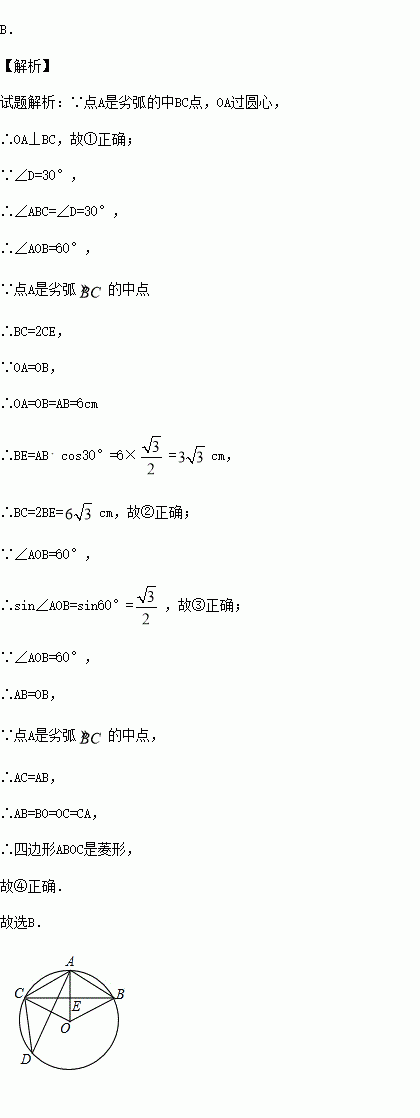 ;④四边形ABOC是菱形.其中正确结论的序号是( )