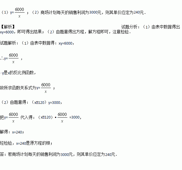 (2)若商场计划每天的销售利润为3000元,则其单价定为多少元?