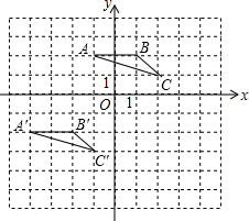 解答 解:(1)所作图形如图所示:(2)所作图形如图所示:A'(-4,-2),B'(-2,-2),C'(-1,-3);(3)S△ABC=$\frac{1}{2}$×2×1=1.
