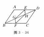如图3-34所示,E,F分别为平行四边形ABCD中AD,BC的中点,G,H在BD上,且 BG=DH,求证四边形EGFH是平行四边形.
