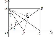 £¨2£©µ±Oµã¹ØÓÚÖ±ÏßAPµÄ¶Ô³ÆµãO¡äÇ¡ºÃÔÚ¶Ô½ÇÏßOBÉÏʱ£¬A£¬T£¬PÈýµãÓ¦ÔÚÒ»ÌõÖ±ÏßÉÏ£¨ÈçÏÂͼËùʾ£©£¬¸ù¾Ýͬ½ÇµÄÓà½ÇÏàµÈµÃµ½Ò»¶Ô½ÇÏàµÈ£¬ÔÙÓÉÒ»¶ÔÖ±½ÇÏàµÈ£¬µÃµ½Èý½ÇÐÎAOPÓëÈý½ÇÐÎOCBÏàËÆ£¬ÓÉÏàËÆµÃ±ÈÀýÇó³öOPµÄ³¤£¬È·¶¨³öP×ø±ê£¬ÉèÖ±ÏßAP½âÎöʽΪy=kx+b£¬°ÑAÓëP×ø±ê´úÈëÇó³ökÓëbµÄÖµ£¬¼´¿ÉÈ·¶¨³ö´ËʱAPµÄ½âÎöʽ£®