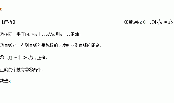 ,②在同一平面内,若a⊥b,b//c,则a⊥c;③直线外一点到直线的垂线段叫点到直线的距离;④|