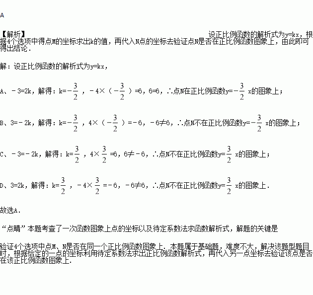 在直角坐标系中,点M,N在同一个正比例函数图象上的是( )