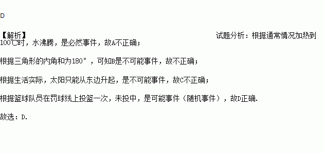 C. 明天太阳从西边升起 D. 篮球队员在罚球线上投篮一次,未投中