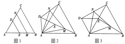 (2)当△ADE绕A点旋转到图3的位置时,△AMN是否还是等边三角形?若是请给出证明,