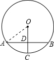 分析:连接OA,由OC垂直于AB,利用垂径定理得到D为AB的中点,由AB的长求出AD的长,设圆的半径为r,在直角三角形AOD中,OA=r,OD=OC-CD表示出OD,再由AD的长,利用勾股定理列出关于r的方程,求出方程的解即可得到r的值.