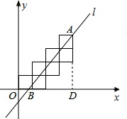 分析 如图,过点A作AD⊥x轴于点D,由直线l将七个正方形面积分为相等的两部分确定出三角形ABD面积,进而求出BD的长,得出OB的长,即为B横坐标.