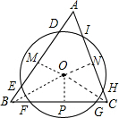 解:过O作OM⊥AB,ON⊥AC,OP⊥BC,垂足分别为M,N,P,