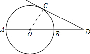 分析 连接OC,由切线的性质可知OC⊥CD,设OC=x,由含30°角直角三角形的性质可得OB=2OC,即OD=2x,再由BD=10,即可求出x的长,即⊙O的半径.