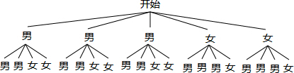 分析:首先根据题意画出树状图,然后由树状图求得所有等可能的结果与所选2人中恰好是一位男同学和一位女同学的情况,再利用概率公式即可求得答案.