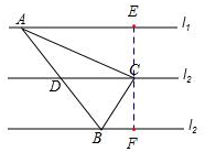 解答 解:(1)过点C作l2的垂线分别交l1与l3于点E、F,如图,![]()