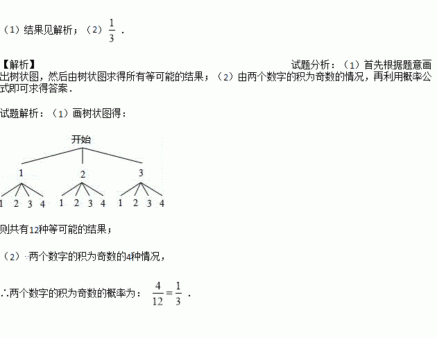 如图,转盘A的三个扇形面积相等,分别标有数字1,2,3,转盘B的四个扇形面积相等,分别有数字1,2,3,4.转动A、B转盘各一次,当转盘停止转动时,将指针所落扇形中的两个数字相乘(当指针落在四个扇形的交线上时,重新转动转盘).