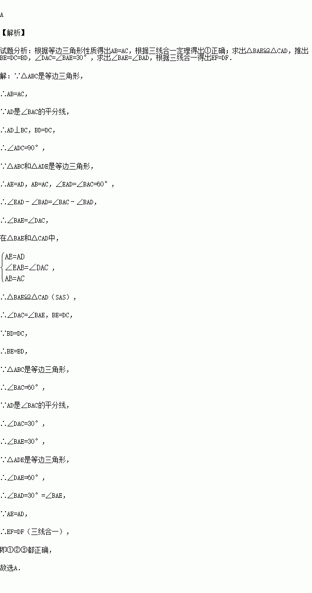 (2015秋•孝感月考)如图,△ABC是等边三角形,AD是∠BAC的平分线,△ADE是等边三角形,下列结论:①AD⊥BC;②EF=FD;③BE=BD.其中正确的个数有( )
