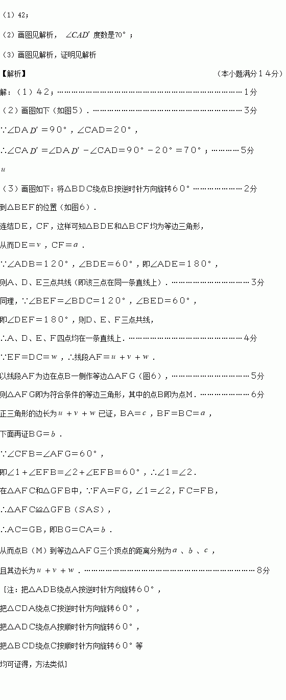 (3)试画出符合下列条件的正三角形:M为正三角形内的一点,M到正三角形三个顶点的距离分别为
