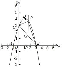 解答 解:(1)把A(-1,0),C(0,3)代入y=-x2+bx+c,