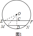 解答:解:①当弦MN和EF在圆心同侧时,如图1,