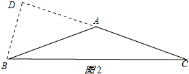 ②当△ABC为钝角三角形时,作BD⊥AC于D,则∠BDA=90°,由△ABC的面积求出BD=1,得出BD=$\frac{1}{2}$AB,得出∠BAD=30°,因此∠BAC=150°;即可得出结果.