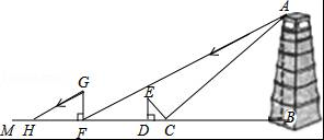 则$\frac{AB}{ED}$=$\frac{BC}{DC}$,$\frac{AB}{GF}=\frac{BF}{FH}$,