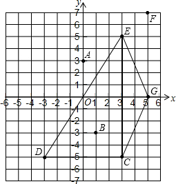 在如图所示的平面直角坐标系中描出下面各点:A(0,3);B(1,-3);C(3,-5);D(-3,-5);E(3,5);F(5,7);G(5,0).