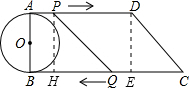 Èçͼ£¬ÔÚÖ±½ÇÌÝÐÎABCDÖУ¬AD¡ÎBC£¬¡ÏB=90¡ã£¬CD=Êýѧ¹«Ê½cm£¬AD=24cm£¬BC=26cm£¬ABΪ¡ÑOµÄÖ±¾¶£®¶¯µãP´ÓAµã¿ªÊ¼ÑØAD±ßÏòµãDÒÔ1 ÀåÃ×/ÃëµÄËÙ¶ÈÔ˶¯£¬¶¯µãQ´ÓµãC¿ªÊ¼ÑØCB±ßÏòµãBÒÔ3ÀåÃ×/ÃëµÄËÙ¶ÈÔ˶¯£¬P¡¢Q ·Ö±ð´ÓA¡¢CÁ½µãͬʱ³ö·¢£¬µ±ÆäÖÐÒ»µãµ½´ï¶Ëµãʱ£¬ÁíÒ»µãÒ²ËæÖ®Í£Ö¹Ô˶¯£¬ÉèÔ˶¯Ê±¼äΪ t Ã룬Çó£º