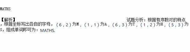 某个英文单词的字母顺序对应如上图中的有序数对分别为(6,2),(1,1),(6,3),(1,2),(5,3),请你把这个英文单词写出来为_____________________ 。