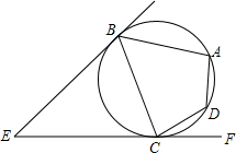 3.如图,EB,EC是⊙O的两条切线,与⊙O相切于B,C两点,点A,D在圆上.若∠E=46°,∠DCF=32°,则∠A的度数是99°.