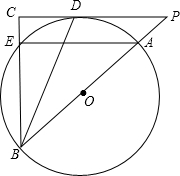 4.如图,AB是⊙O的直径,点P在BA的延长线上,过点P作⊙O的切线,切点为D,PD的延长线与弦BE的延长线交于点C,连接BD.