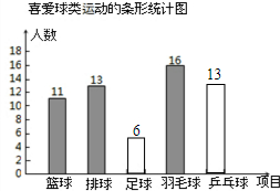 喜欢足球的人数是50×12%=6(人),喜欢乒乓球的人数是:50×26%=13(人).