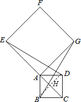 (2)如图,连接BD交AC于点H,根据四边形ABCD是正方形,于是得到AH=DH,∠AHD=90°,由于$AD=AB=\sqrt{2}$,求出AH=DH=1,在Rt△EHD中,由勾股定理得:$ED=\sqrt{E{H^2}+D{H^2}}=\sqrt{17}$,又由(1)△ABG≌△ADE得到BG=ED,于是结论可得.
