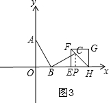 £¨4£©Èçͼ3£¬µ±µãCÔÚÕý·½ÐÎEFGHµÄ¶Ô½ÇÏßÉÏʱ£¬µãCÓëµãH¾àÀë×îС£¬ÉèOB=x£¬¸ù¾ÝÈ«µÈÈý½ÇÐζÔÓ¦±ßÏàµÈµÃPE=x-1£¬ËùÒÔPH=3-x£¬ÓÉ¡÷CPHΪµÈÑüÖ±½ÇÈý½ÇÐΣ¬ÁÐʽx=3-x£¬Çó³öxµÄÖµ£¬ÔòCH=$\sqrt{2}$PC£¬µÃ³ö½áÂÛ£®