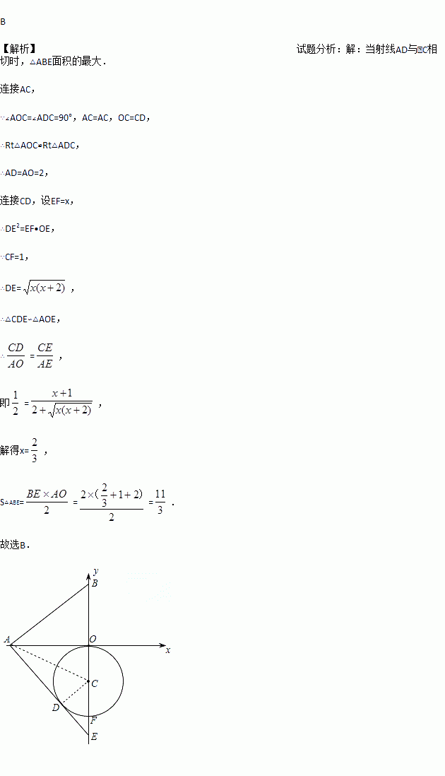 如图,已知A、B两点的坐标分别为(-2,0)、(0,1),⊙C 的圆心坐标为(0,-1),半径为1.若D是⊙C上的一个动点,射线AD与y轴交于点E,则△ABE面积的最大值是