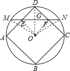 分析:(1)首先连接OE,OF,OD,OM,ON,由正方形ABCD内接于⊙O,E、F分别为DA、DC的中点,易得四边形OEDF是正方形,继而可得OG=
