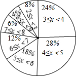 分析 (1)根据第一组的频数是4,所占百分比为8%即可求得总户数,将总户数乘以第三组的百分比即可求得第三组的户数,将第四组的户数除以总户数即可求得第五组户数所占总户数的百分比,将总户数乘以第五组的百分比即可求得第五组的户数,将第六组的户数除以总户数即可求得第六组户数所占总户数的百分比,将总户数减去以上各组的户数即可求得第七组的户数,将第七组的户数除以总户数即可求得第七组户数所占总户数的百分比.