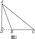 (2)如图2,钝角△ABC中,AB=13,AC=15,BC边上高AD=12,