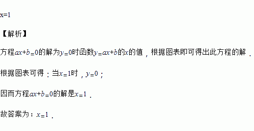 小颖在画一次函数y=ax+b(a,b为常数,且a≠0)的图象时,求得x与y的部分对应值如表,则方程ax+b=0的解是_____.
